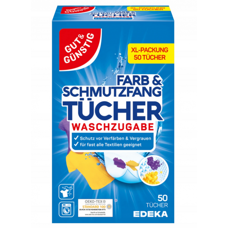 G&G Chusteczki łapią wypłukujące się barwy i cząstki brudu z roztworu wodnego i zabezpieczają przed przenoszeniem się ich na inne tekstylia.