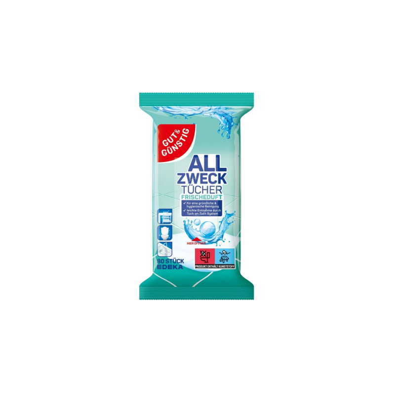 Gut&Günstig Frischeduft to uniwersalne chusteczki czyszczące, które skutecznie usuwają zabrudzenia i pozostawiają przyjemny, świeży zapach. Idealne do szybkiego sprzątania w domu, biurze czy samochodzie.