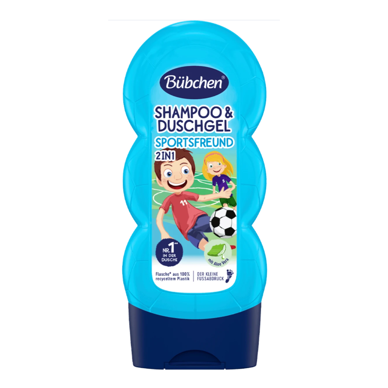 Produkt zawiera aloes, znany ze swoich silnych właściwości nawilżających, które pomagają utrzymać naturalne nawodnienie delikatnej skóry dziecka. Dzięki niemu skóra Twojego dziecka pozostanie zawsze zdrowa i nawilżona. Bübchen Kids Szampon i żel pod prysznic 2 w 1 Przyjaciel Sportu delikatnie oczyszcza i pielęgnuje skórę i włosy Twojego dziecka. Został stworzony specjalnie z myślą o dzieciach powyżej 3 lat, aby zawsze dostarczały im pewności, że ich skóra i włosy są odpowiednio pielęgnowane.