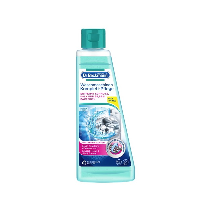 Płyn przeznaczony do czyszczenia i ochrony pralek, który zapobiega odkładaniu kamienia, zanieczyszczeń i głęboko osiadających bakterii w automacie.