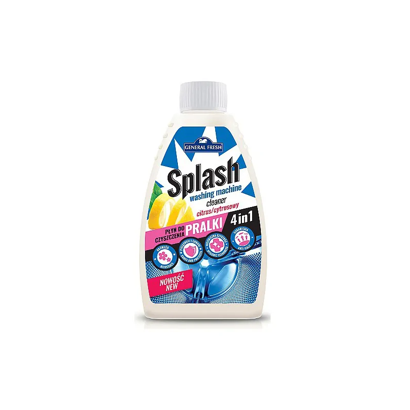 Środek o poczwórnym działaniu: usuwa zabrudzenia i resztki proszku, zabezpiecza pralkę przed osadzaniem się kamienia, minimalizuje przykry zapach i chroni urządzenie przed rdzą.