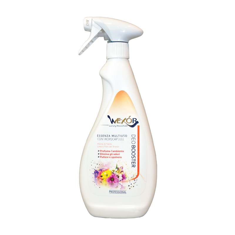 DeoBooster Fiori Brasil Wexór to esencja do pomieszczeń o hiperskoncentrowanej formule: kilka rozpyleń w pomieszczeniu gwarantuje niezrównane uczucie „pachnącej czystości” przez bardzo długi czas, dzięki bardzo wysokiemu stężeniu drogocennych esencji i obecności mikrokapsułek .