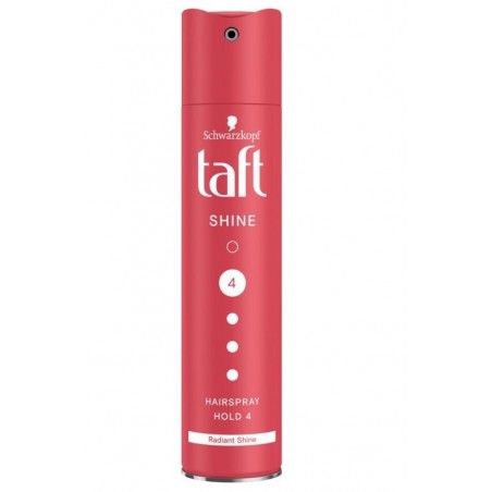 Taft Shine Lakier do Włosów 4 to lakier zapewniający mocne utrwalenie fryzury do 48 godzin, jednocześnie nadając włosom intensywny, lśniący blask.