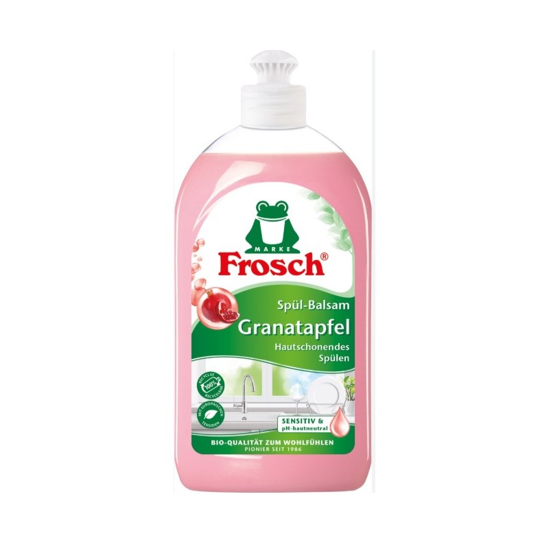 Frosch Płyn do Naczyń Granatapfel to ekologiczny środek czyszczący, który skutecznie usuwa tłuszcz i zabrudzenia, jednocześnie dbając o skórę dłoni.