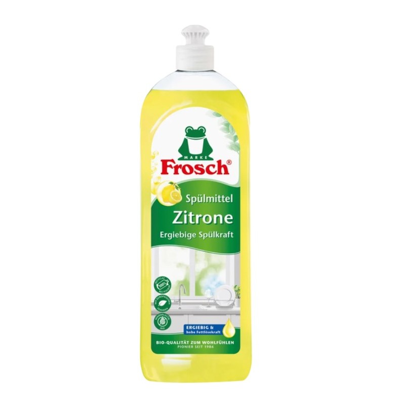 Frosch Zitrone Płyn do Naczyń to skuteczny i ekologiczny środek czyszczący, który usuwa tłuszcz i uporczywe zabrudzenia, pozostawiając naczynia lśniąco czyste.
