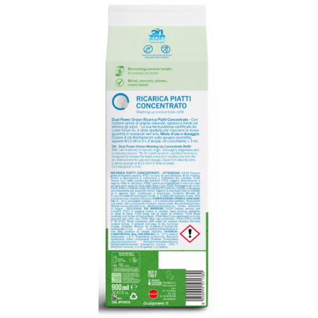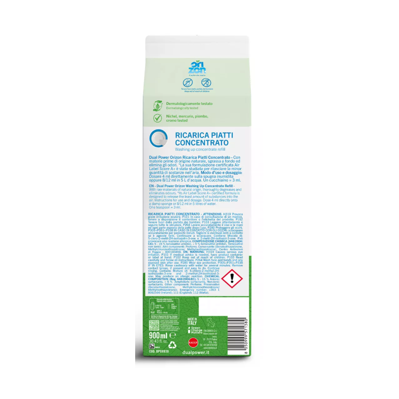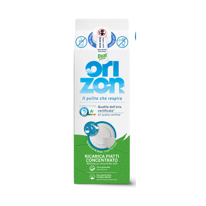 Orizon CONCENTRATED DISH REFILL łączy wygodę uzupełniania z jakością powietrza certyfikowaną przez Air Label Score na poziomie A+, dzięki formule, która minimalizuje uwalnianie substancji do środowiska domowego.