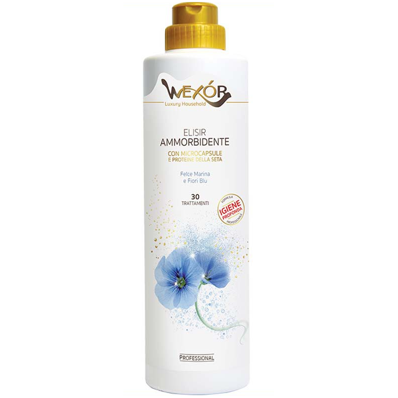 Wexor Armonia Viola - eliksir zmiękczający tkaniny posiada profesjonalną formułę wzbogaconą o mikrokapsułki i proteiny jedwabiu.