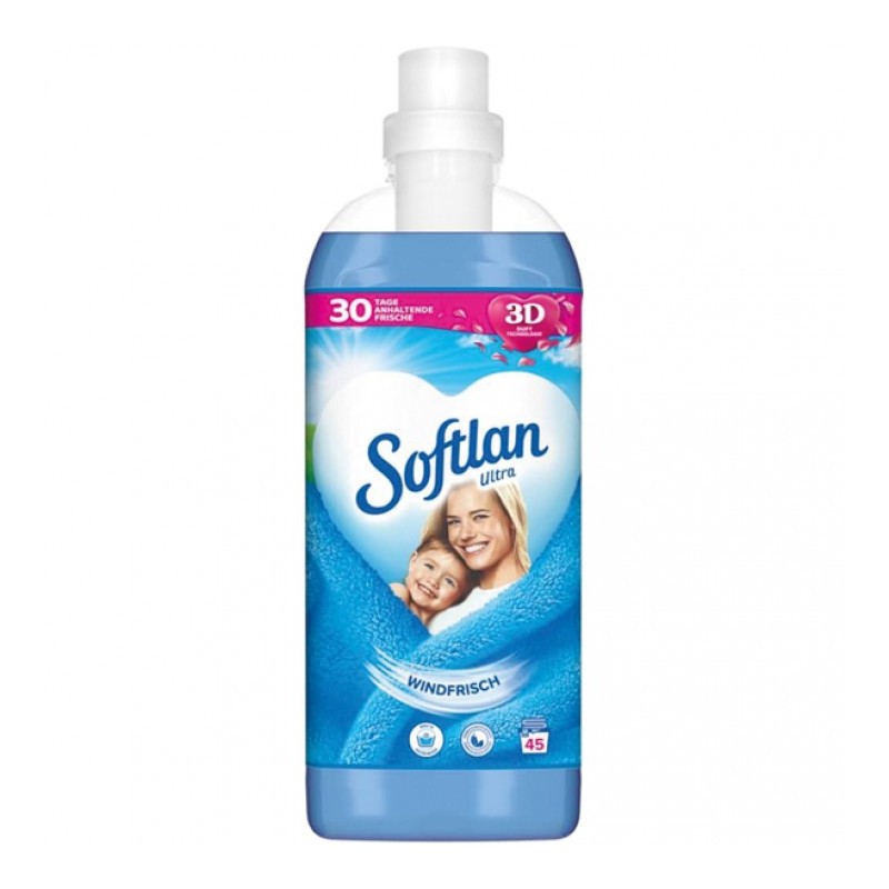 Softlan Ultra Windfrisch to płyn do płukania tkanin, który nadaje praniu wyjątkową miękkość oraz długotrwały, świeży zapach inspirowany czystym, górskim powietrzem. Specjalna formuła sprawia, że ubrania są przyjemne w dotyku, łatwiejsze do prasowania i zachowują świeżość na długo po praniu.