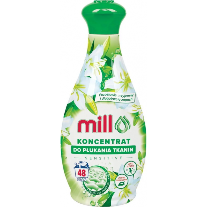 Mill Sensitive Płyn do Płukania Tkanin to delikatny, hipoalergiczny produkt stworzony z myślą o osobach o wrażliwej skórze, w tym niemowlętach i alergikach.