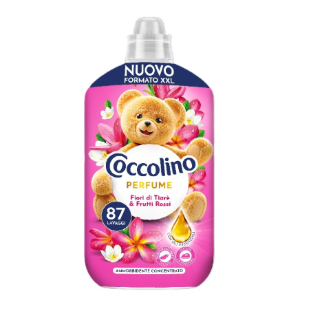 Coccolino Perfume Fiori di Tiare & Frutti Rossi to płyn do płukania tkanin o intensywnej, perfumowanej kompozycji zapachowej łączącej egzotyczne kwiaty tiary z nutami czerwonych owoców. Zapewnia wyjątkową miękkość oraz długotrwałą świeżość, pozostawiając na ubraniach elegancki i wyrazisty aromat.