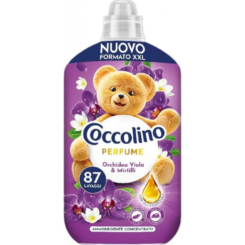 Coccolino Perfume Orchidea, Viola & Mirtilli to płyn do płukania tkanin o intensywnej, perfumowanej kompozycji zapachowej łączącej nuty orchidei, fiołka i jagód. Zapewnia wyjątkową miękkość oraz długotrwałą świeżość, pozostawiając na ubraniach elegancki, kwiatowo-owocowy aromat.