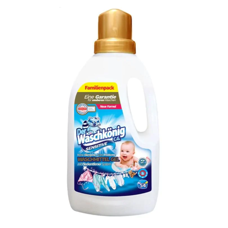 Der Waschkonig Sensitive - żel do prania opracowany z myślą o praniu ubranek dziecięcych oraz dorosłych o wrażliwej skórze lub skłonnościami do alergii.