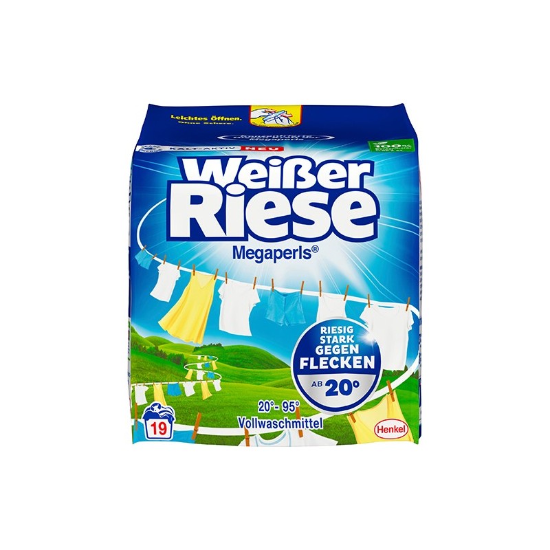Proszek do prania Weißer Riese Megaperls do tkanin białych i kolorowych to potężna świeżość i czystość pranych ubrań.