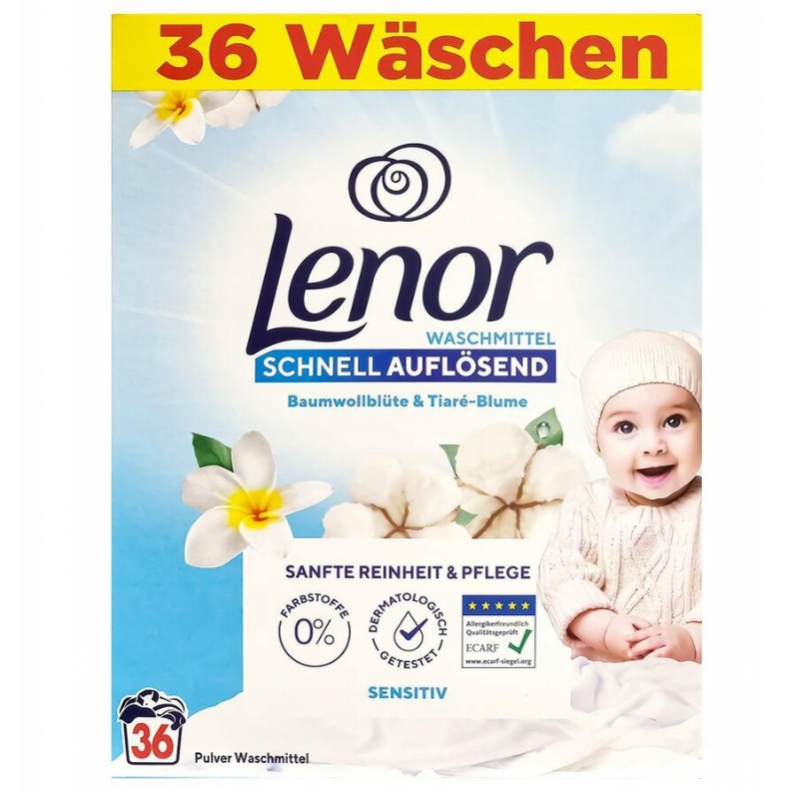 Krótki opis: Lenor Sensitive to delikatny, a zarazem skuteczny proszek do prania, opracowany specjalnie z myślą o osobach o wrażliwej skórze. Skutecznie usuwa zabrudzenia, pozostawiając ubrania czyste, miękkie i przyjemne w dotyku – bez intensywnych zapachów i zbędnych barwników.