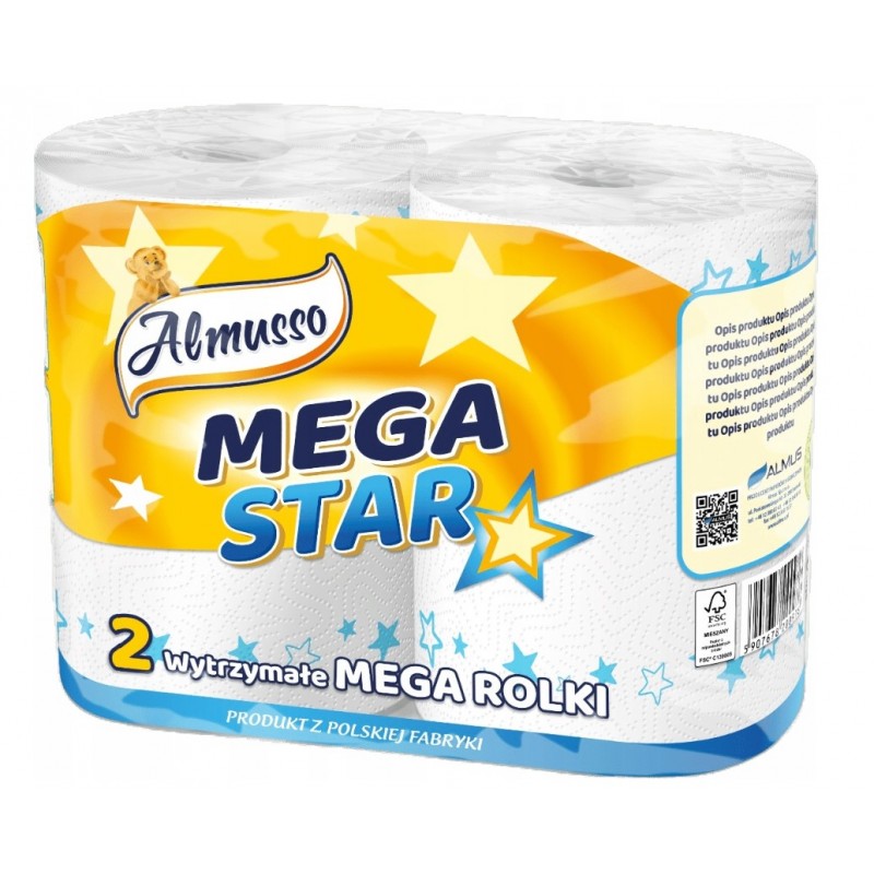 Almusso Mega Star Ręcznik Papierowy to niezrównana kombinacja chłonności, wytrzymałości i wydajności.