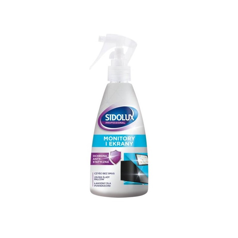 Sidolux Środek do Mycia Monitorów i Ekranów — delikatny płyn czyszczący stworzony do pielęgnacji ekranów LCD, LED, OLED, plazmowych oraz szklanych powierzchni urządzeń. Skutecznie usuwa kurz, smugi i odciski palców.