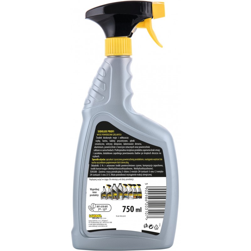 Sidolux Profi do powierzchni szklanych to profesjonalny preparat przeznaczony do czyszczenia szyb, luster oraz innych gładkich, błyszczących powierzchni. Skutecznie usuwa zabrudzenia, tłuszcz, ślady palców oraz osady, pozostawiając idealnie czystą i lśniącą powierzchnię bez smug.