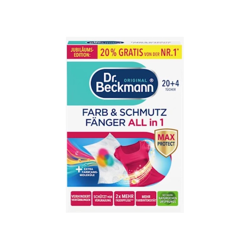 Dr. Beckmann Chusteczki Wyłapujące Kolor i Brud to praktyczne i niezawodne rozwiązanie, które chroni ubrania przed zafarbowaniem podczas prania.
