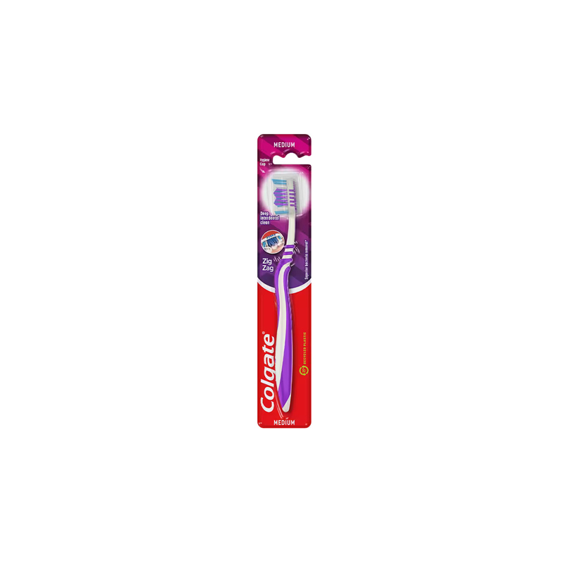 Colgate Zig Zag to szczoteczka do zębów o średniej twardości (Medium), zaprojektowana dla skutecznego i dokładnego czyszczenia jamy ustnej.