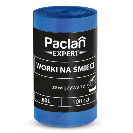 Paclan Expert Niebieskie Worki na Śmieci Zawiązywane 60l 100 sztuk