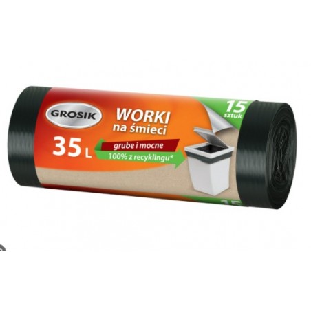 Grosik Worki na śmieci 35 l to praktyczne i solidne worki przeznaczone do codziennego użytku w domu, biurze czy innych pomieszczeniach. Dzięki odpowiedniemu rozmiarowi doskonale pasują do mniejszych koszy na odpady, zapewniając wygodę i higienę.