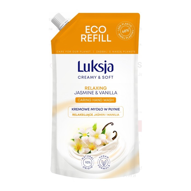 Kremowe mydło w płynie Luksja Creamy & Soft Jaśmin i Wanilia skutecznie oczyszcza skórę, zapewniając jej pielęgnację i natychmiastową miękkość.